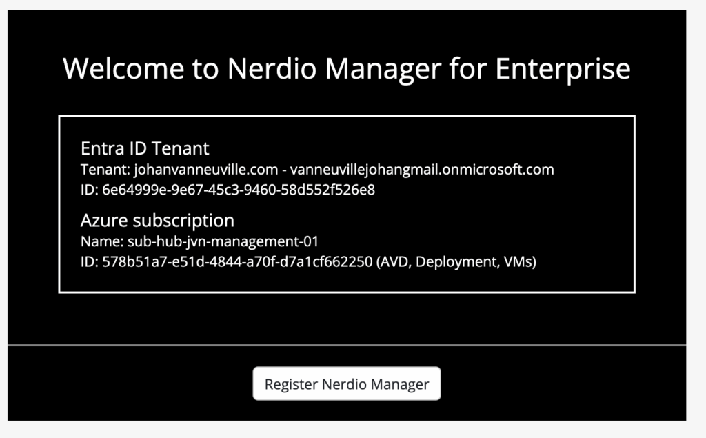 After the deployment, the rest of the process is the same. It’s starts with registering Nerdio.